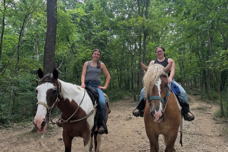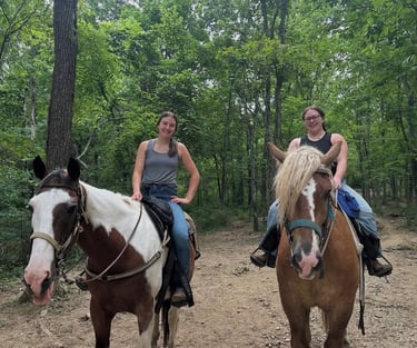 Emily Simmons and Bre Bobak from IUP Equestrian Team trail riding in Kentucky.